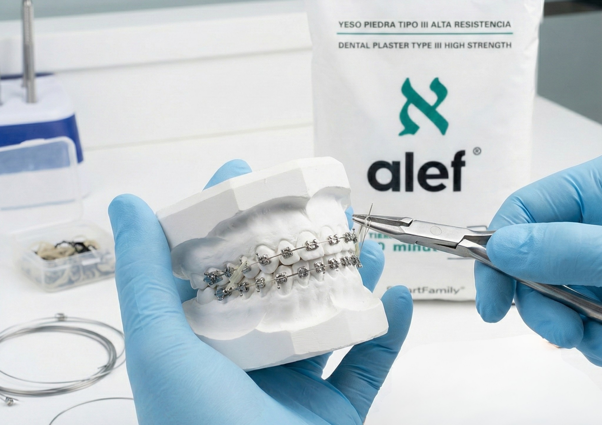 El yeso Alef ortodoncia Tipo III, es el estándar para modelos de ortodoncia y trabajos de precisión. Ofrece la alta resistencia y estabilidad dimensional necesarias para un diagnóstico exacto y el archivo seguro de casos